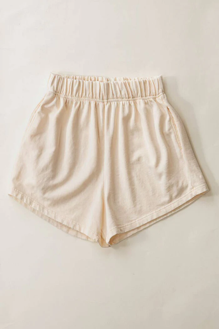 Made by Urban Daizy. These mineral wash French terry shorts feature an elastic waist, on seam pockets and pair perfectly with our cropped sweatshirts.